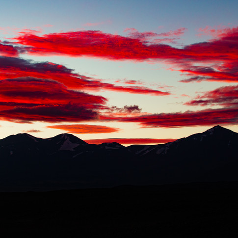 Acabei esperando o pôr do sol em frente ao Vulcão San Francisco. Havia poucas nuvens, mas muito vento, dificultando bastante o trabalho. Após o sol desaparecer, as nuvens adquiriram um vermelho tão intenso que parecia sangue no céu. Infelizmente, é impossível reproduzir com exatidão essa cena numa tela de computador, e se conseguir não parecerá real e sim uma imagem trabalhada no photoshop.